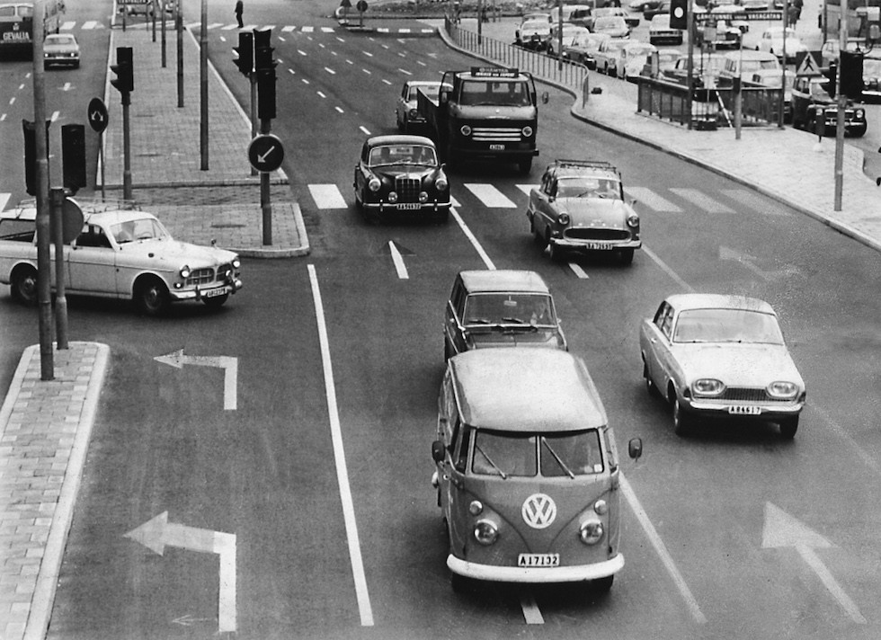 Sweden changed from driving on the left to driving on right, 5 AM, September 3, 1967.