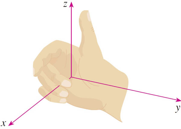 - Your thumb now points in the $\hat z$ direction.