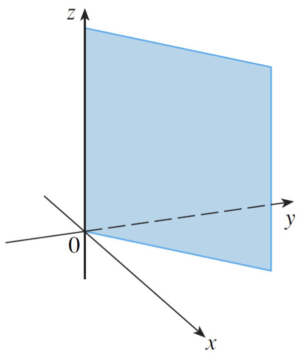 - $y=0$ $\Rightarrow$ A point is in the $xz$ plane.