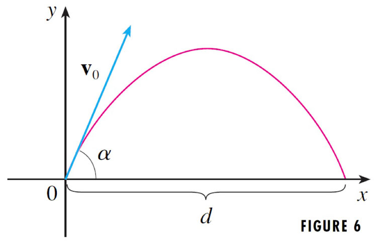 Assuming that a projectile is launched at $t$ from the origin in the diagram above, we have: $$\myv r(0)=\myc{0,0}$$ $$\myv v(0)=\myc{v_0\cos\alpha,v_0\sin\alpha}.$$
