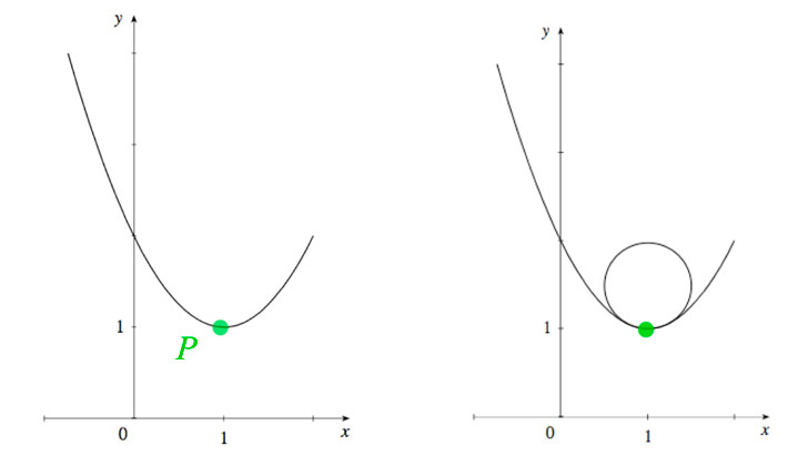 The circle with the same curvature (that is, radius=$1/\kappa$) as $\myv r(t)$ at a point $P$ on the curve.