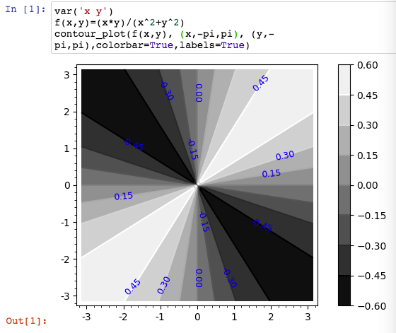 But approaching the origin along the line $x=y\equiv t$ [Hey, another use of parameterization!]: $$h(t,t)=t^2/(2 t^2)\to 1/2.$$ So the limit along this line is 1/2, and *the* limit of $h$ at $(0,0)$ is not unique.
