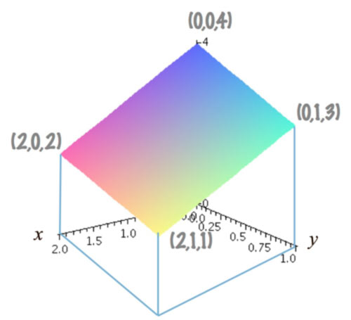 - Estimate the volume under this surface, for example, by estimating the average height of the surface, then multiplying by the area of the rectangle $R$ underneath.