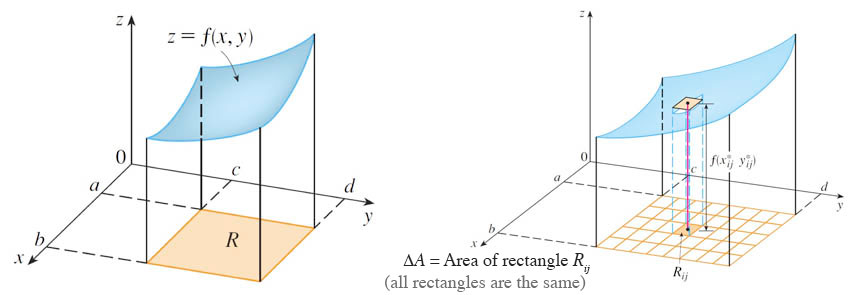 How to evaluate a double integral like $$\iint_R f(x,y)\,dA=\iint_R f(x,y)\,dx\,dy?$$