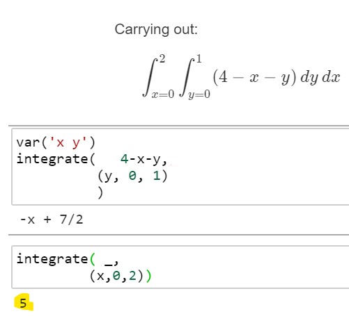Partial integration of a function $f(x,y)$ with respect to $y$ using this notation: $$\int_{y=c}^d f(x,y)\,dy=A(x).$$ This means A(x) is the result of