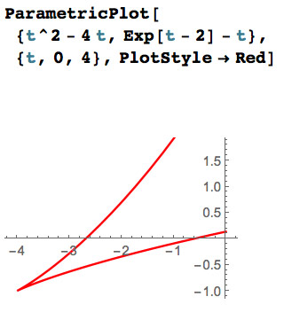 At right: $\myv r(t)=\myc{t^2-4t,e^{t-2}-t}$, so